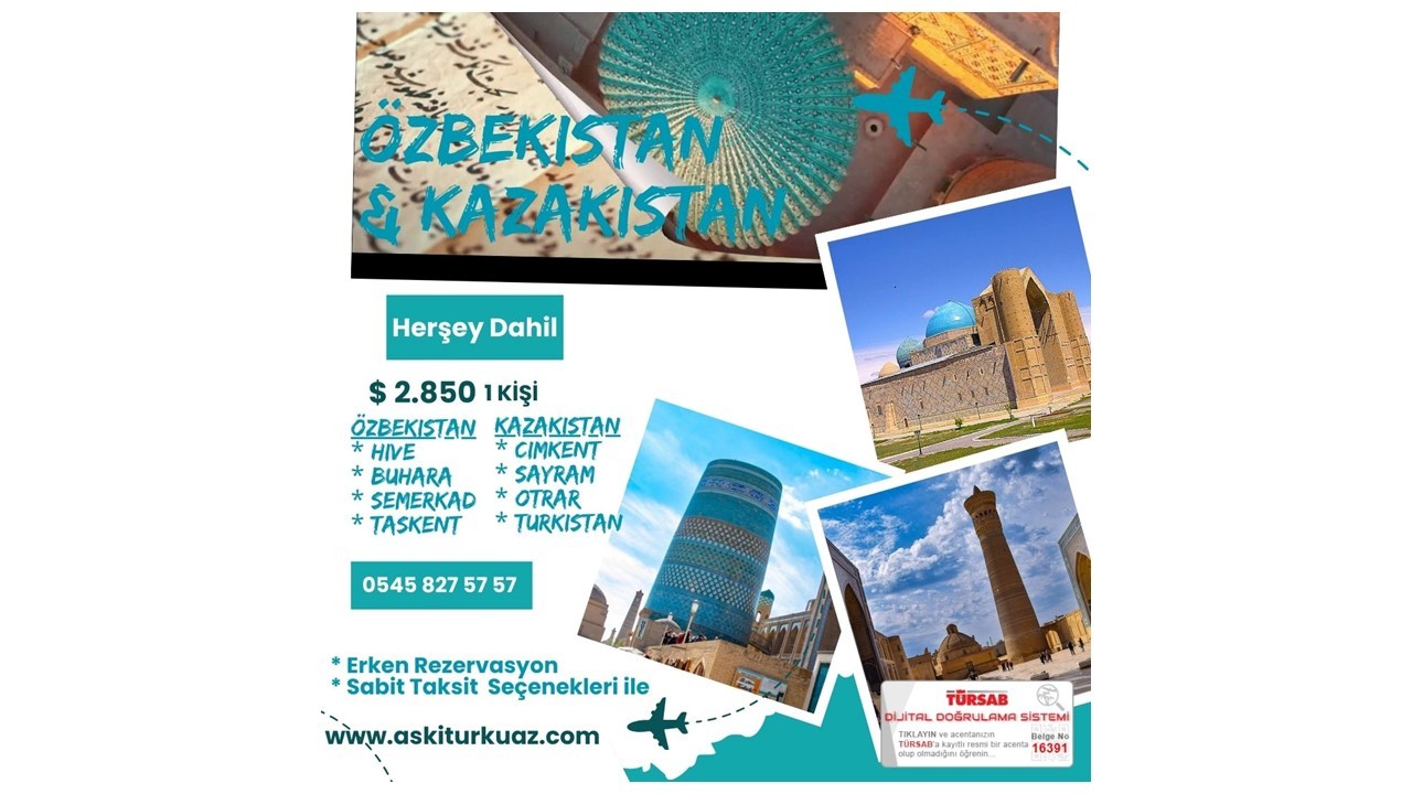 Seyahatimizin daha konforlu ve güvenilir geçmesi adına turumuza katılanları 2 şerli Refik-i Rah İlan ediyoruz. Her iki kişiye, bir adet Özbekistan içinde internet ve telefon iletişiminde kullanılmak üzere içinde yeterli internet kotası ve dakikası olan cep telefonları verilecektir. (Tur sonunda Türkiye gümrüğümden geçildikten sonra geri alınacaktır. )