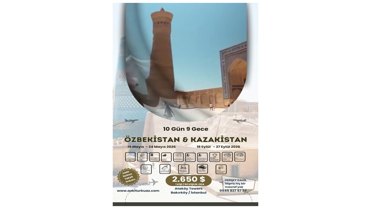 8. Gün ( ÖZBEKİSTAN ) TAŞKENT & ( KAZAKİSTAN ) ÇİMKENT ( 04 Ağustos 2026 Cuma )